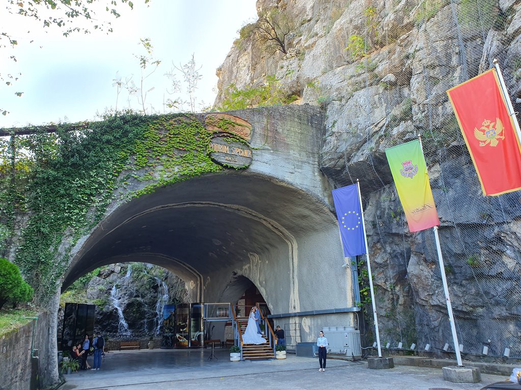 Когда туннель был в мужских руках, тут стояла военная техника, падали бомбы… А как только он попал в женские руки — стал мирной территорий с алкогольным ароматом 🙂 теперь мы тут слушаем концерт, общаемся под изысканные закуски и лучшее черногорское вино. Женщина всегда за мир.